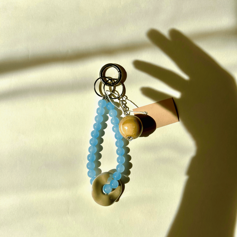Zawieszka do torby lub kluczy – niebieski i masełko