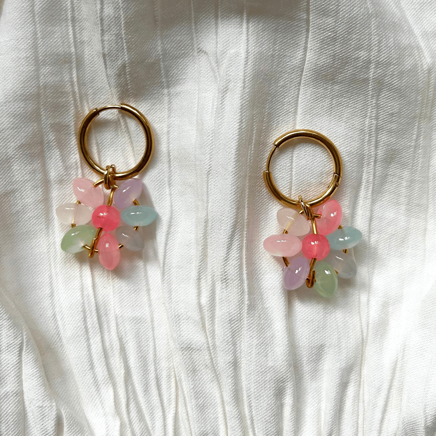Kolczyki „Pleciony Kwiat” PASTELE szkło i stal chirurgiczna OTOK