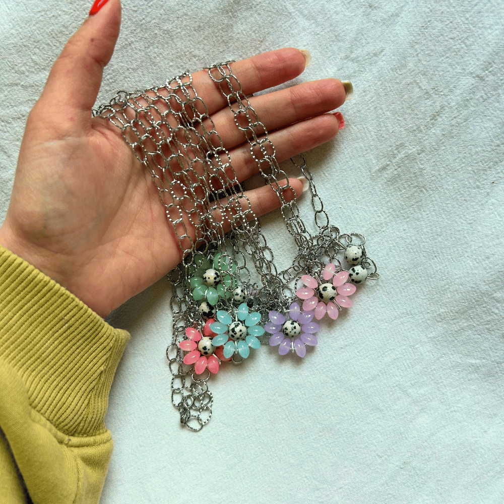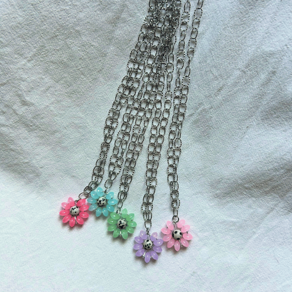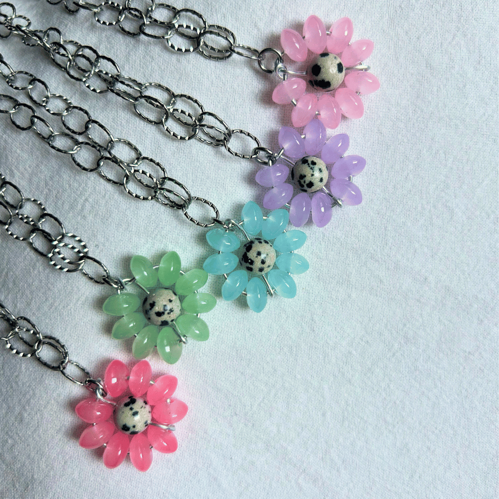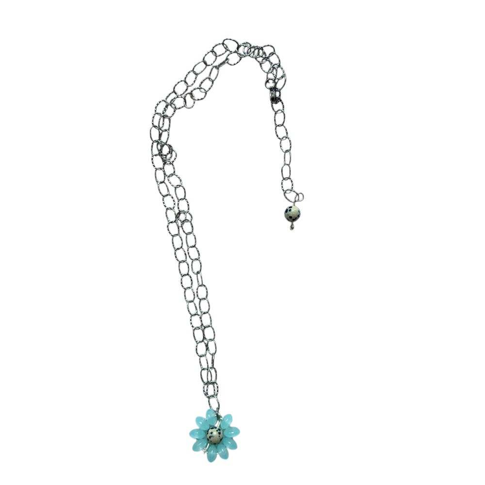 Łańcuszek ze stali, kwiatek i jaspis dalmatyński – niebieski OTOK