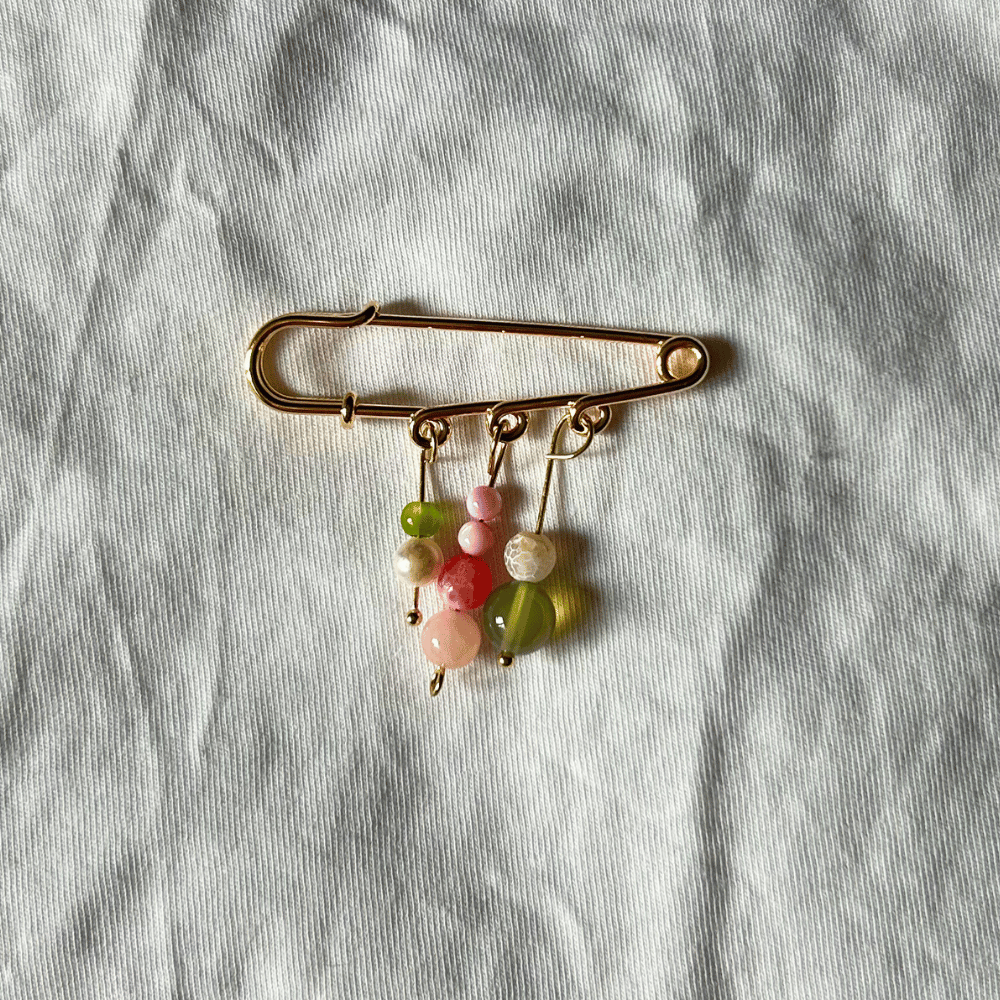 Broszka ze stali chirurgicznej, wykonana z trzech ręcznie robionych elementów – każda z nich jest jedyna w swoim rodzaju i dostępna wyłącznie w jednej sztuce. W kompozycji znajdziesz kamienie naturalne, perły oraz jaspis, które dodają jej charakteru i wyjątkowej formy.