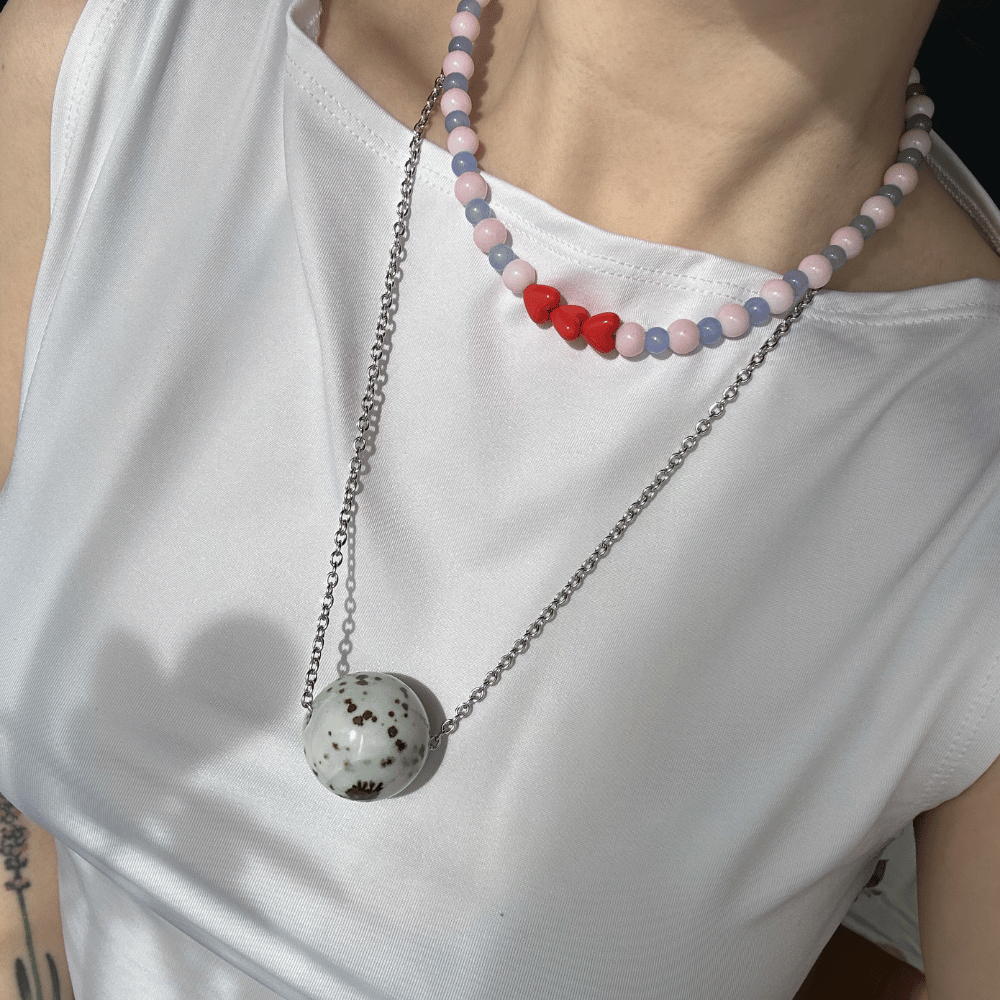 Subtelny, srebrny łańcuszek ze stali chirurgicznej, którego serce stanowi duża ceramika w ciapki. To minimalistyczna, a jednocześnie urokliwa propozycja, która pięknie prezentuje się zarówno noszona solo, jak i jako element warstwowych stylizacji.
