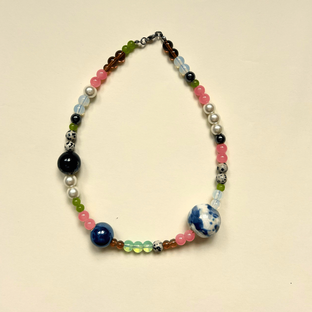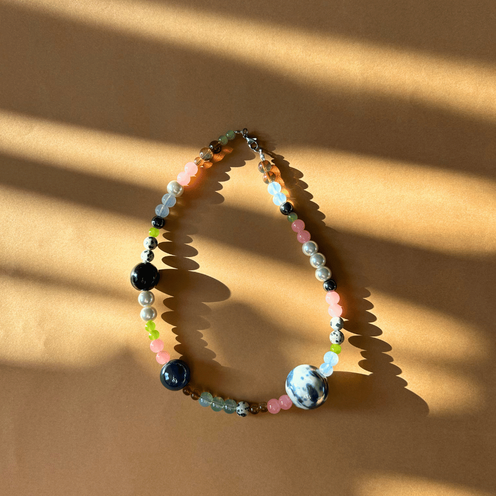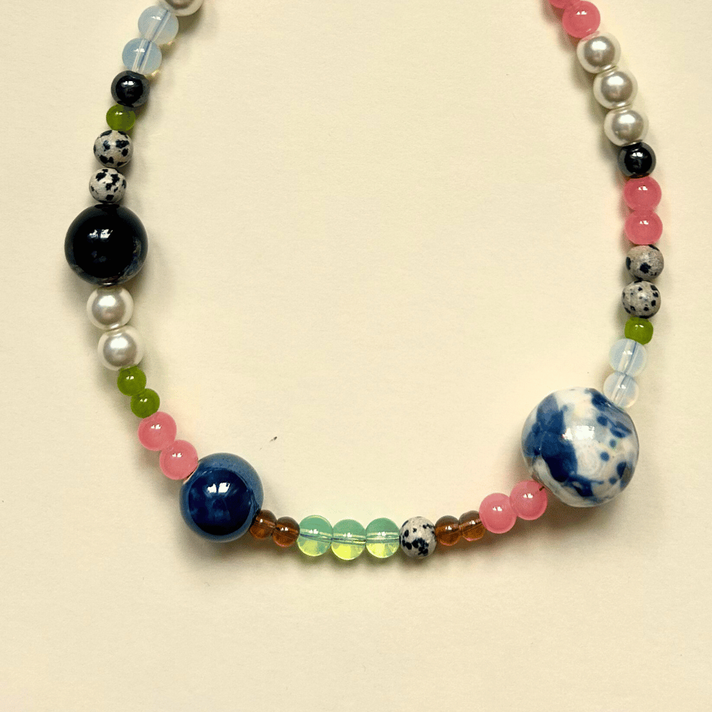 Każdy naszyjnik z kolekcji Niezapominajka to unikatowe, ręcznie tworzone dzieło sztuki. Nie ma dwóch identycznych egzemplarzy – każdy jest wyjątkowy i niepowtarzalny. Połączenie kamieni naturalnych, szkła i ceramiki tworzy harmonijną kompozycję pełną subtelności i charakteru. Całość zwieńcza delikatne zapięcie ze stali chirurgicznej.