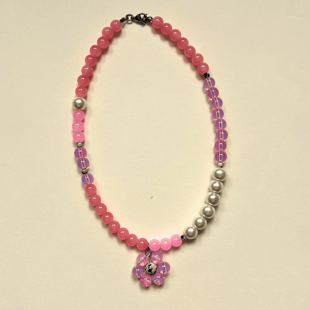 Wyjątkowy, pełen subtelności naszyjnik utrzymany w różnych odcieniach różu, który zachwyca swoją miękką kolorystyką i delikatną formą. Całość tworzą szklane koraliki 8 mm, przeplatane większymi szklanymi perłami 10 mm, co dodaje kompozycji elegancji i lekkości.