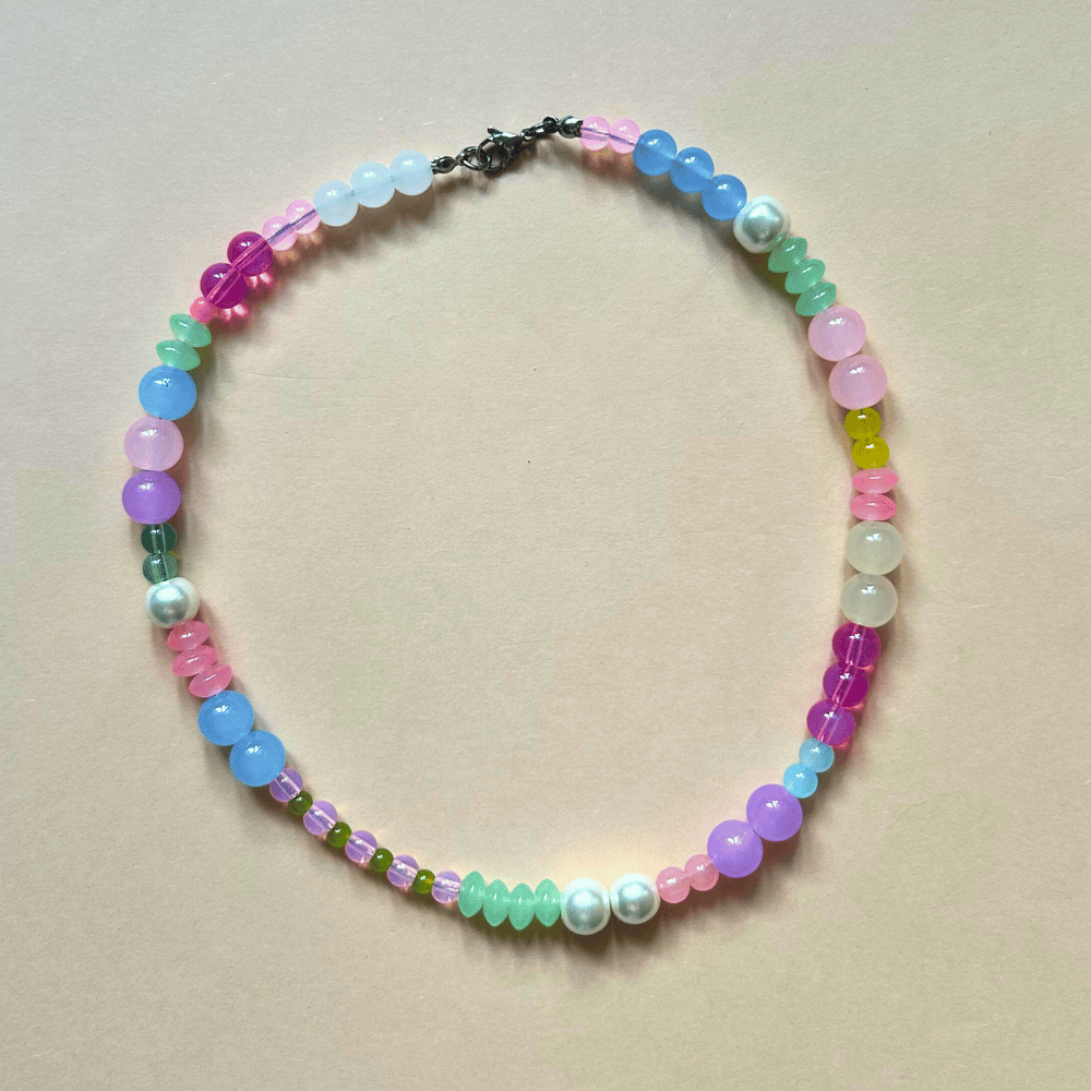 Delikatny, a jednocześnie pełen uroku naszyjnik wykonany z pastelowych szklanych koralików oraz szklanych pereł, tworzących harmonijną i kolorową kompozycję. Każdy projekt jest niepowtarzalny, dzięki czemu otrzymujesz unikatowy naszyjnik, którego nie ma nikt inny.