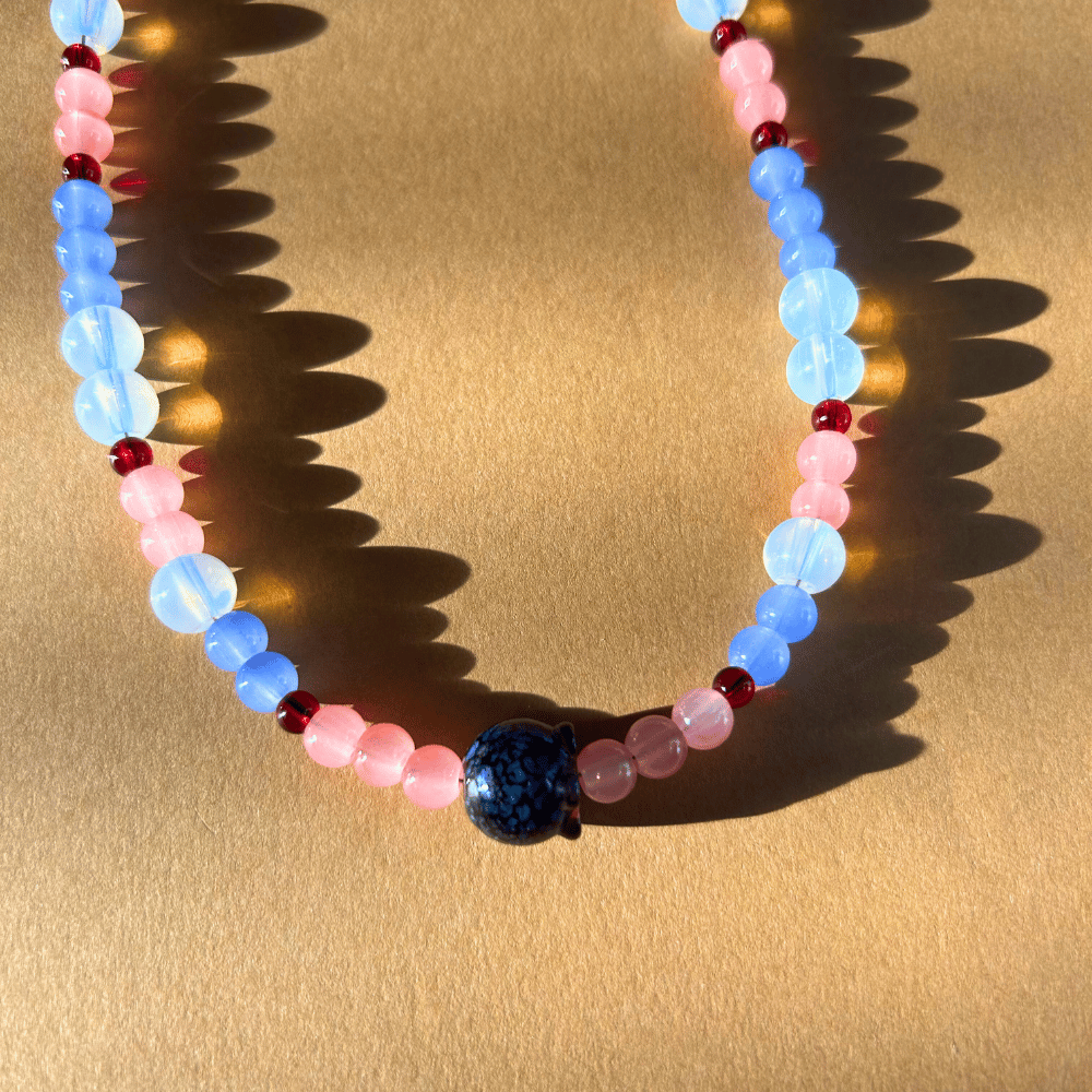 Naszyjnik szklany z borówką – niebieski, różowy, porzeczkowy